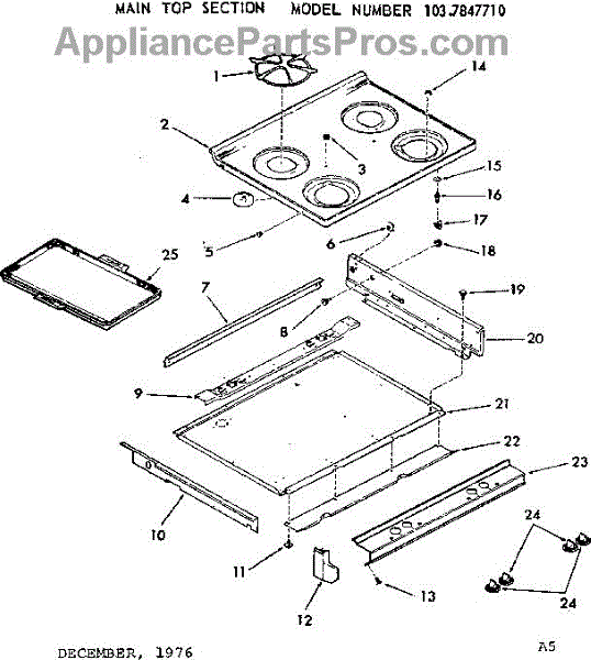 Parts for Kenmore 103.7847710 (1037847710, 103 7847710): Main Top Section Parts