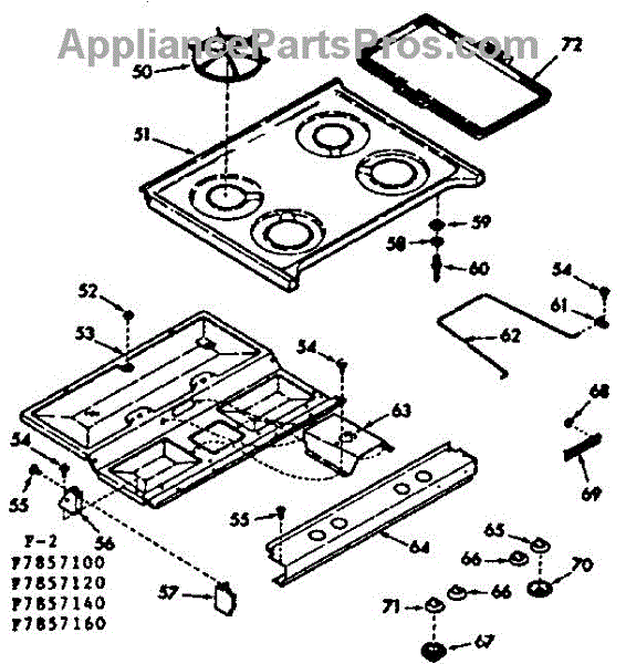 Parts for Kenmore 103.7857160 (1037857160, 103 7857160): Main Top Section Parts