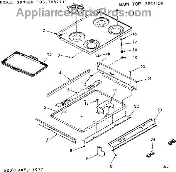 Parts for Kenmore 103.7857711 (1037857711, 103 7857711): Main Top Section Parts
