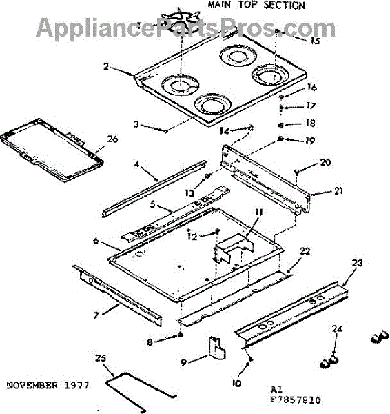 Parts for Kenmore 103.7857810 (1037857810, 103 7857810): Main Top Section Parts