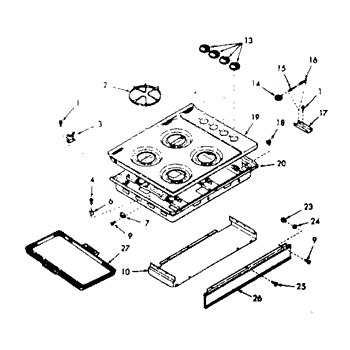 Parts for Kenmore 103.7867340 (1037867340, 103 7867340): Main Top Section Parts