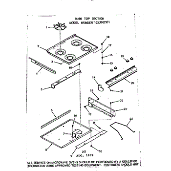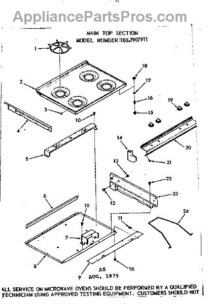 Parts for Kenmore 103.7907911 (1037907911, 103 7907911): Main Top Section Parts