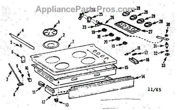 Parts for Kenmore 103.7986615 (1037986615, 103 7986615): Main Top Section Parts
