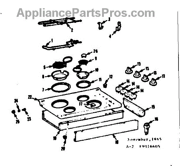 Parts for Kenmore 103.9016606 (1039016606, 103 9016606): Main Top Section Parts