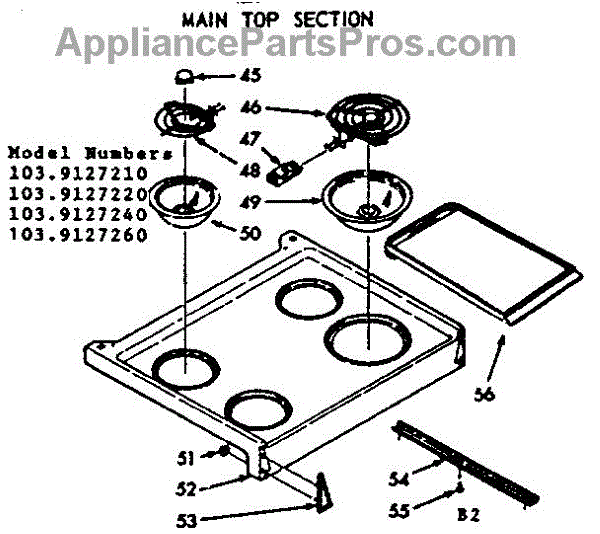 Parts for Kenmore 103.9127210 (1039127210, 103 9127210): Main Top Section, Pan & Ring Kit Parts