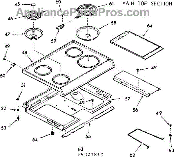 Parts for Kenmore 103.9337810 (1039337810, 103 9337810): Main Top Section Parts