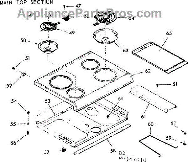 Parts for Kenmore 103.9347610 (1039347610, 103 9347610): Main Top Section Parts