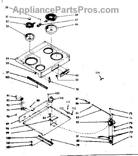Parts for Kenmore 103.9357040 (1039357040, 103 9357040): Main Top Section Parts