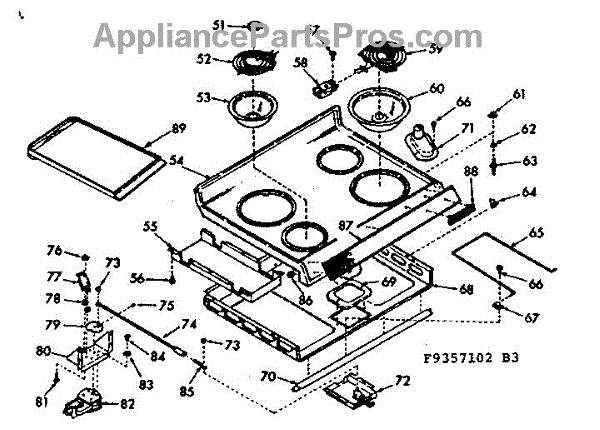 Parts for Kenmore 103.9357142 (1039357142, 103 9357142): Main Top Section Parts