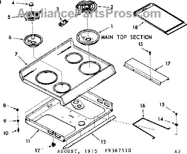 Parts for Kenmore 103.9367540 (1039367540, 103 9367540): Main Top Section Parts