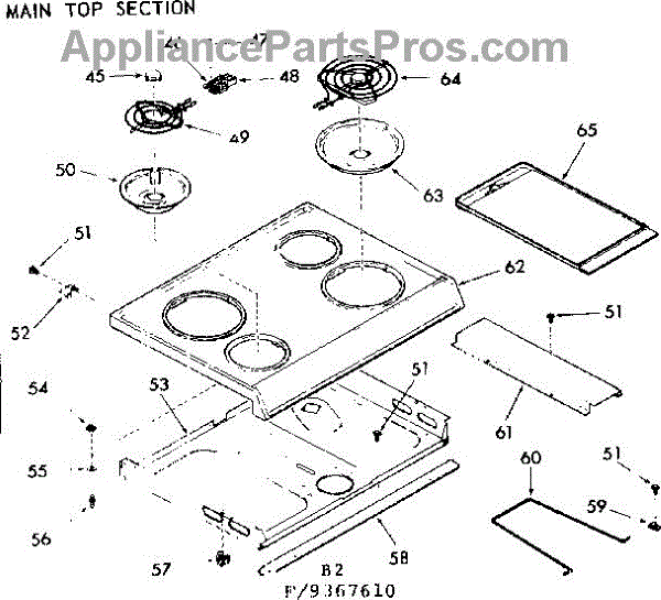 Parts for Kenmore 103.9367610 (1039367610, 103 9367610): Main Top Section Parts
