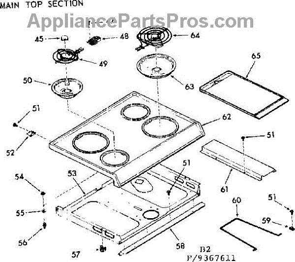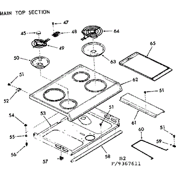 Parts for Kenmore 103.9367611 (1039367611, 103 9367611): Main Top Section Parts