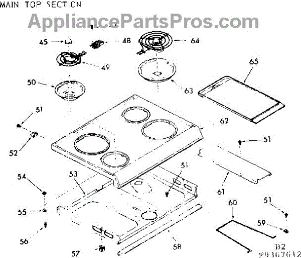 Parts for Kenmore 103.9367612 (1039367612, 103 9367612): Main Top Section Parts