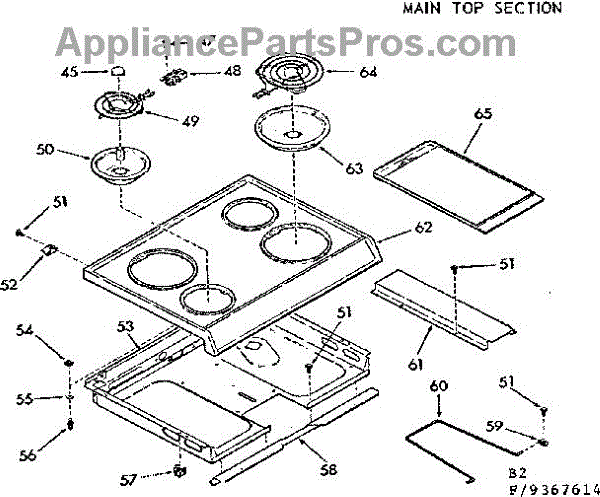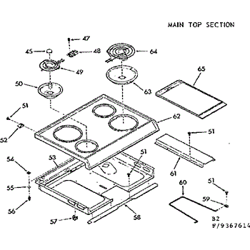 Parts for Kenmore 103.9367614 (1039367614, 103 9367614): Main Top Section Parts