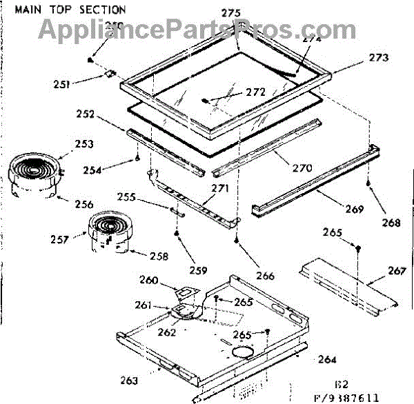 Parts for Kenmore 103.9387611 (1039387611, 103 9387611): Main Top Section Parts
