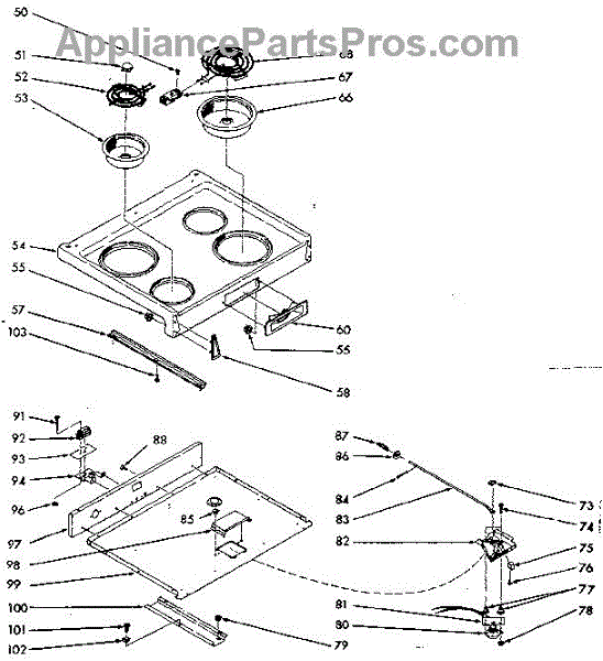 Parts for Kenmore 103.9436840 (1039436840, 103 9436840): Main Top Section Parts