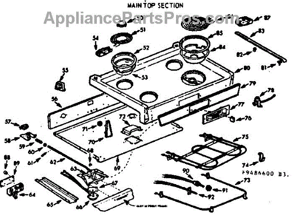 Parts for Kenmore 103.9486640 (1039486640, 103 9486640): Main Top Section Parts