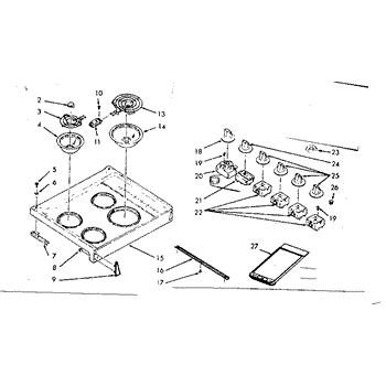 Parts for Kenmore 103.9717021 (1039717021, 103 9717021): Main Top Section Parts