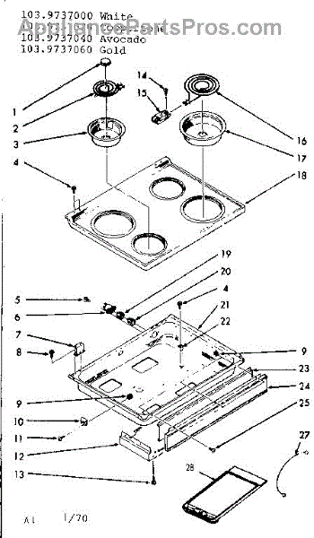 Parts for Kenmore 103.9737000 (1039737000, 103 9737000): Main Top Section Parts
