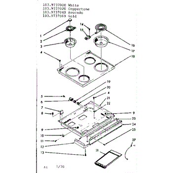Parts for Kenmore 103.9737020 (1039737020, 103 9737020): Main Top Section Parts