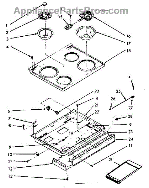 Parts for Kenmore 103.9747021 (1039747021, 103 9747021): Main Top Section Parts