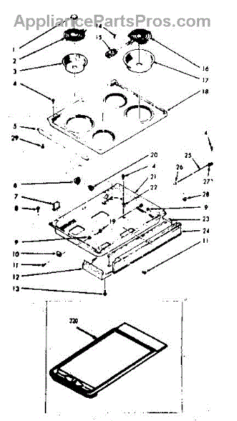 Parts for Kenmore 103.9767040 (1039767040, 103 9767040): Main Top Section And Opt. Set-On Griddle Parts