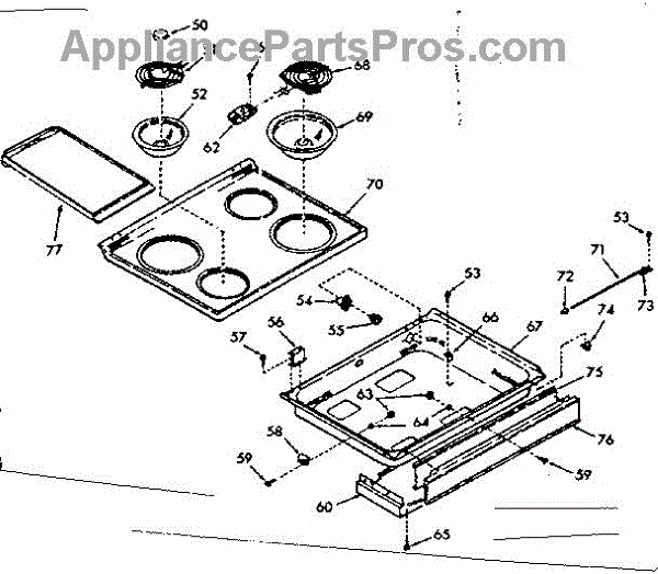 Parts for Kenmore 103.9767140 (1039767140, 103 9767140): Main Top Section Parts