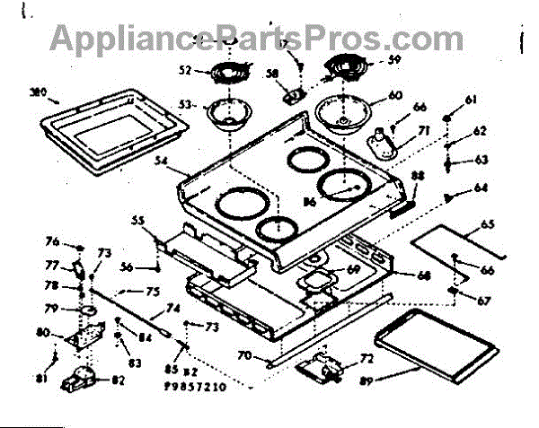 Parts for Kenmore 103.9857260 (1039857260, 103 9857260): Main Top Section Parts