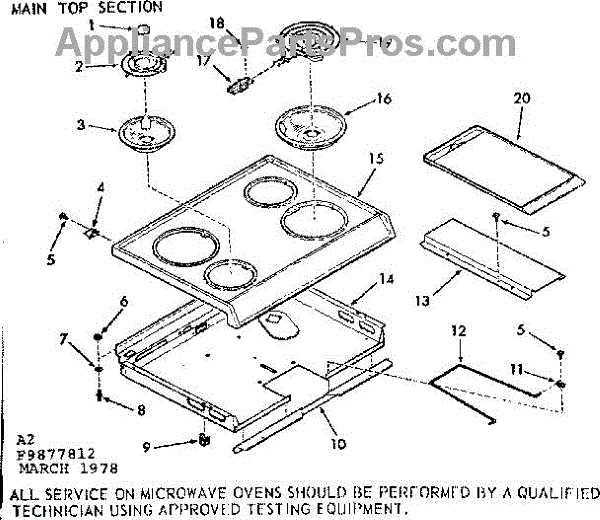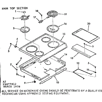 Parts for Kenmore 103.9877812 (1039877812, 103 9877812): Main Top Section Parts