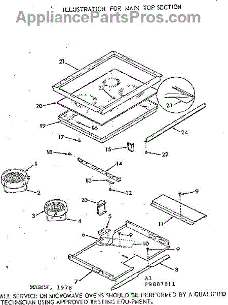 Parts for Kenmore 103.9887811 (1039887811, 103 9887811): Main Top Section Parts