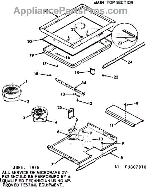 Parts for Kenmore 103.9887910 (1039887910, 103 9887910): Main Top Section Parts
