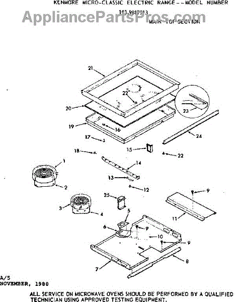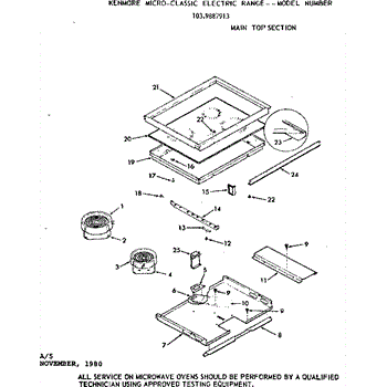 Parts for Kenmore 103.9887913 (1039887913, 103 9887913): Main Top Section Parts