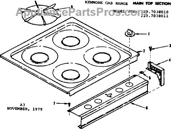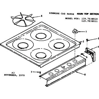 Parts for Kenmore 119.7038010 (1197038010, 119 7038010): Main Top Section Parts