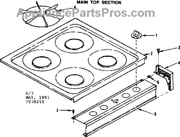 Parts for Kenmore 119.7038210 (1197038210, 119 7038210): Main Top Section Parts