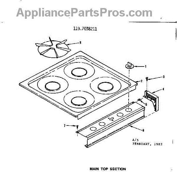 Parts for Kenmore 119.7038211 (1197038211, 119 7038211): Main Top Section Parts