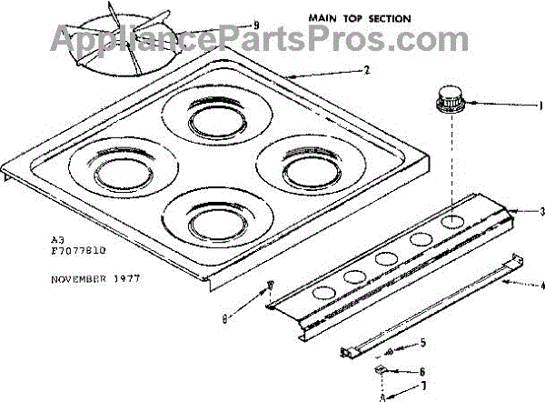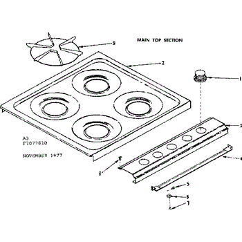 Parts for Kenmore 119.7077810 (1197077810, 119 7077810): Main Top Section Parts