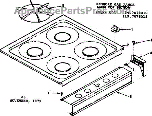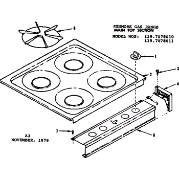 Parts for Kenmore 119.7078010 (1197078010, 119 7078010): Main Top Section Parts