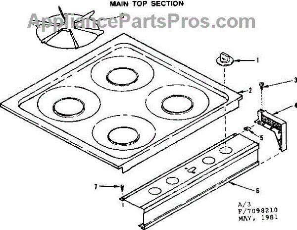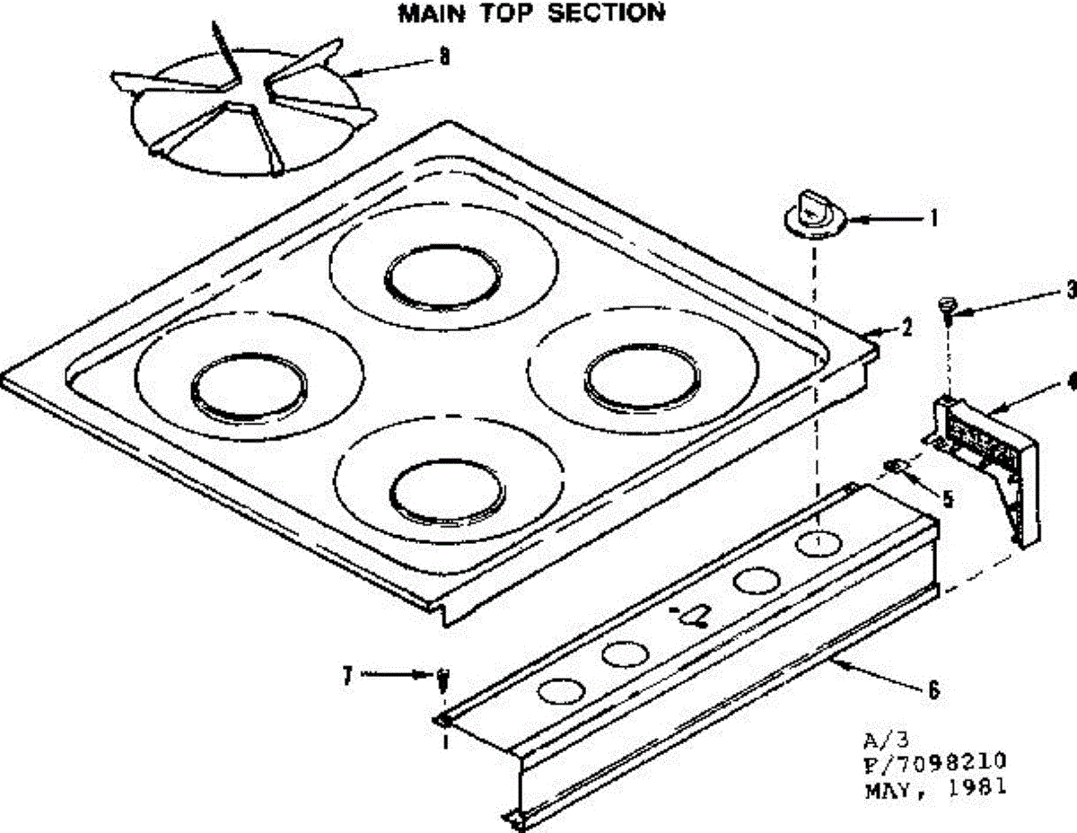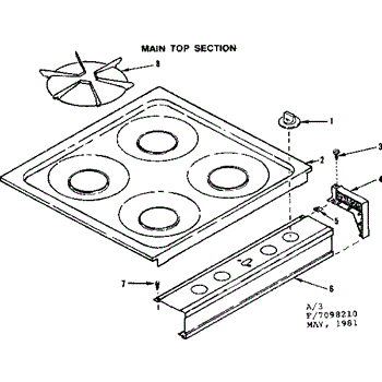 Parts for Kenmore 119.7098210 (1197098210, 119 7098210): Main Top Section Parts