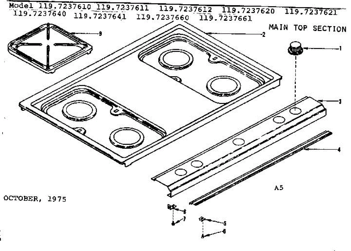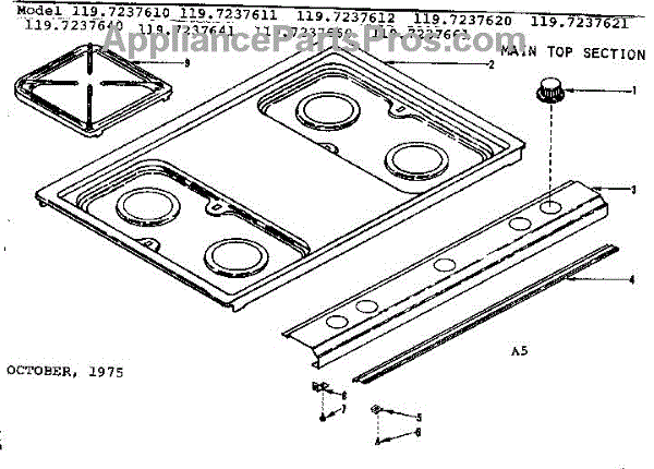 Parts for Kenmore 119.7237660 (1197237660, 119 7237660): Main Top Section Parts