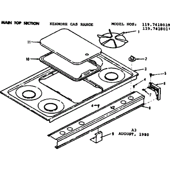 Parts for Kenmore 119.7418010 (1197418010, 119 7418010): Main Top Section Parts