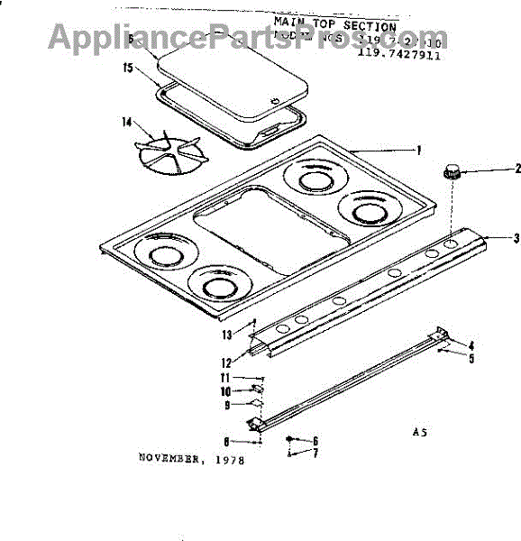 Parts for Kenmore 119.7427910 (1197427910, 119 7427910): Main Top Section Parts