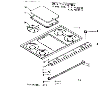 Parts for Kenmore 119.7427911 (1197427911, 119 7427911): Main Top Section Parts