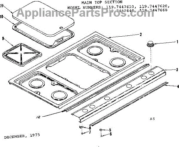 Parts for Kenmore 119.7447640 (1197447640, 119 7447640): Main Top Section Parts