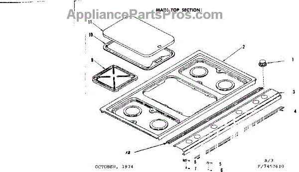 Parts for Kenmore 119.7457610 (1197457610, 119 7457610): Main Top Section Parts