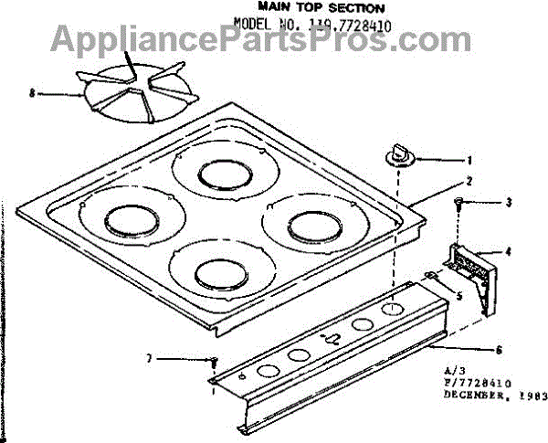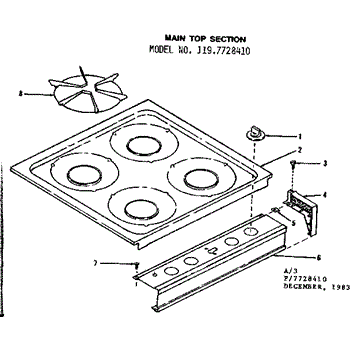 Parts for Kenmore 119.7728410 (1197728410, 119 7728410): Main Top Section Parts