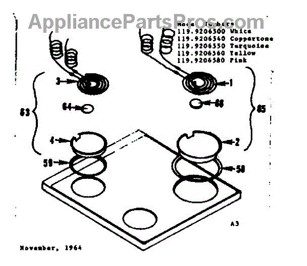 Parts for Kenmore 119.9206550 (1199206550, 119 9206550): Main Top Section Parts