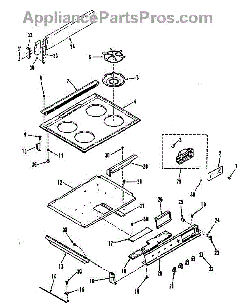 Parts for Kenmore 911.3658611 (9113658611, 911 3658611): Main Top Section Parts