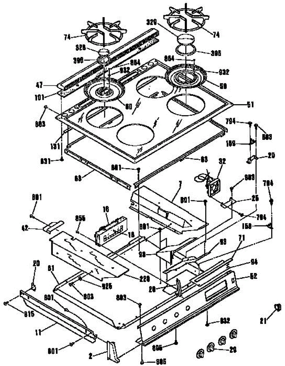 Parts for Kenmore 911.3672590 (9113672590, 911 3672590): Main Top Section Parts