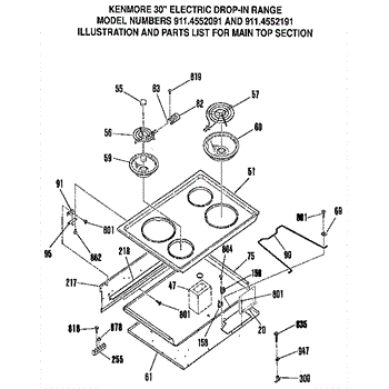 Parts for Kenmore 911.4552191 (9114552191, 911 4552191): Main Top Section Parts
