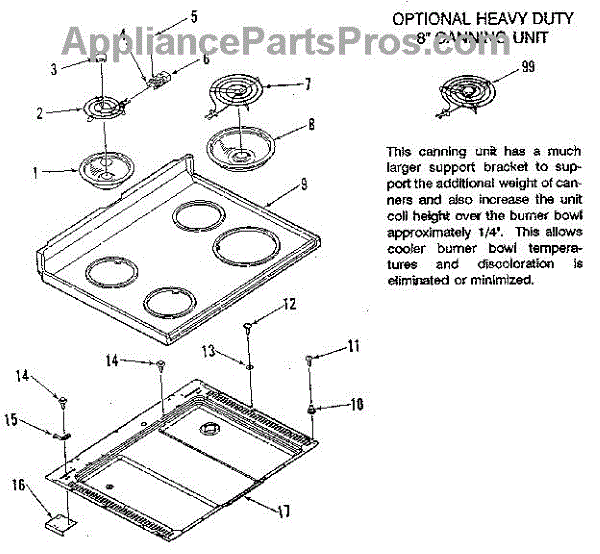 • Supplies direct electric heat to a 6-inch cooktop burner